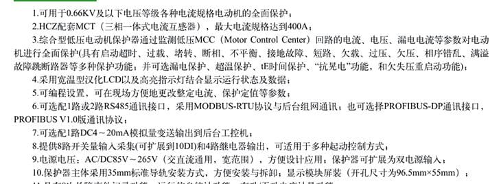 HCZ系列綜合型低壓電動機保護器